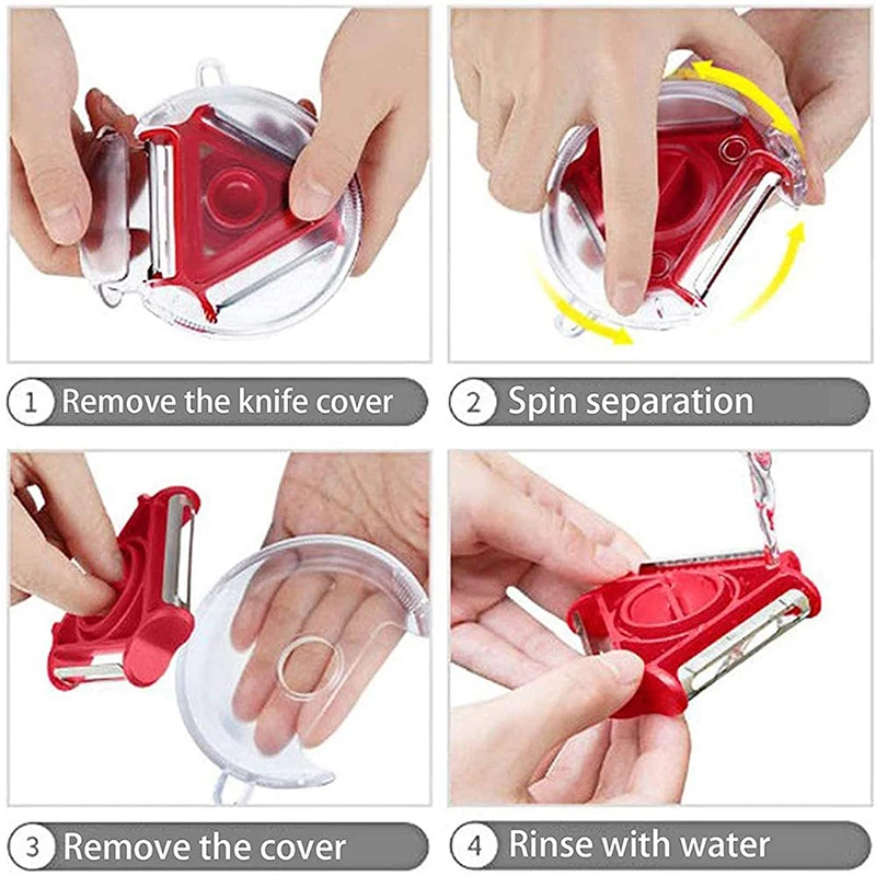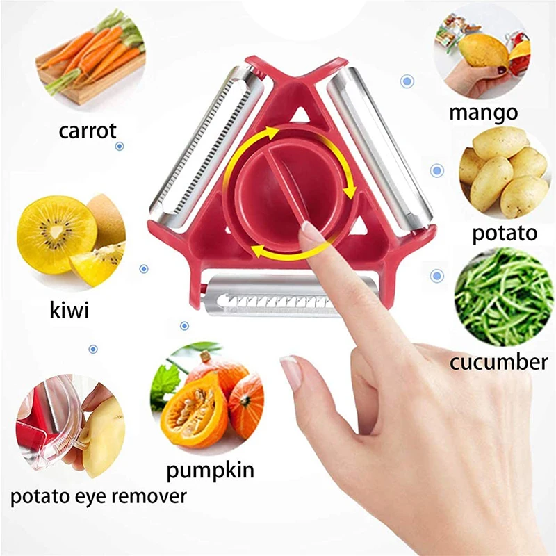This 3 in 1 Magic Peeler Set is a versatile kitchen tool designed for efficient peeling, slicing, and shredding of fruits and vegetables. With its three interchangeable stainless steel blades, it allows you to easily prepare a variety of ingredients for your meals.