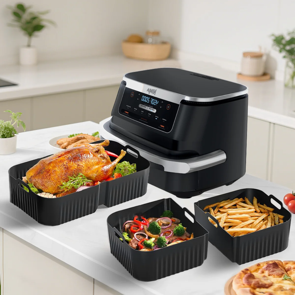 - 3 Large Silicone Air Fryer Molds.