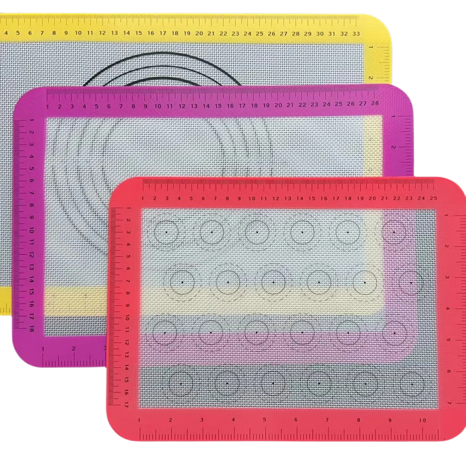 These silicone baking mats are perfect for all your baking needs. They are reusable, non-stick, and come in three vibrant colors. Ideal for baking cookies and other pastries, these mats make cleanup a breeze.