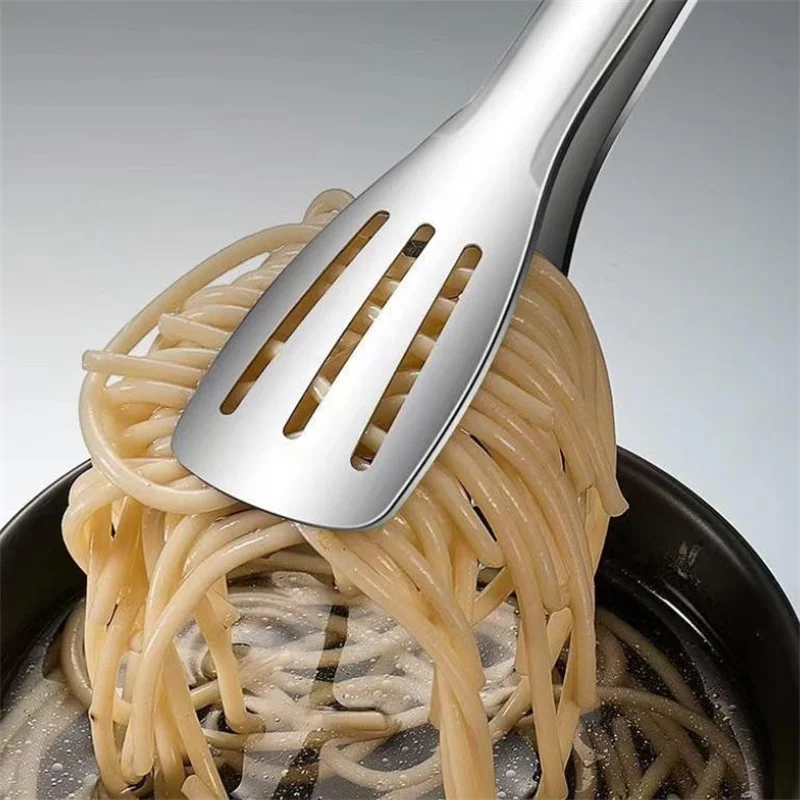 These stainless steel food tongs are designed for versatility in the kitchen, perfect for handling meat, salads, and bread. With a non-slip grip, they provide comfort and ease of use while cooking or serving.