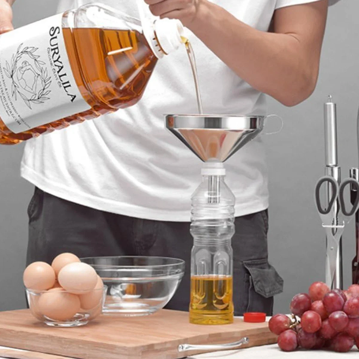 This stainless steel kitchen funnel is designed for food-grade use and comes in three different sizes, making it a versatile tool for your kitchen needs.
