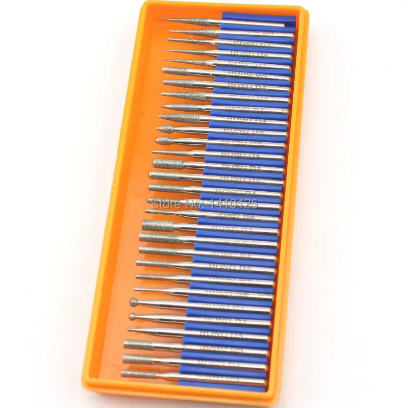 30 Pcs Diamond Coated Burrs Set Grit 120 Rotary Bur 2.35/3mm Shank