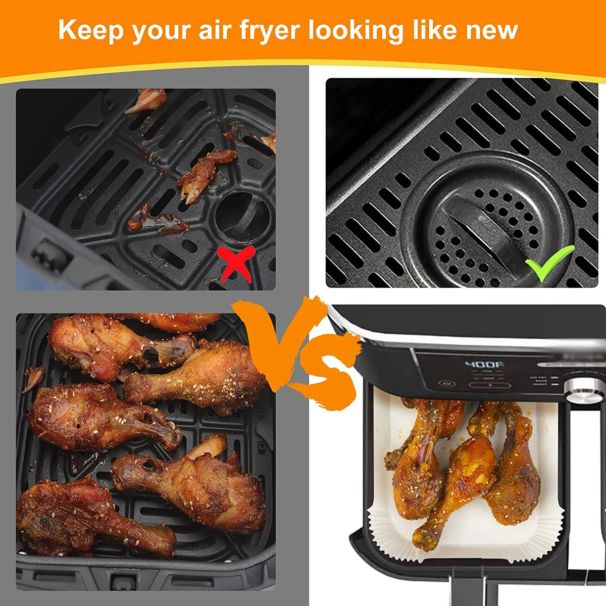 Introducing our Air Fryer Paper Liners, designed specifically for use with the Ninja Dual Air Fryer. These non-stick square parchment papers are perfect for keeping your fryer clean while ensuring your food cooks evenly and deliciously.
