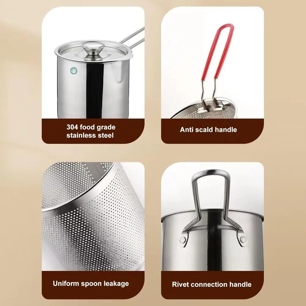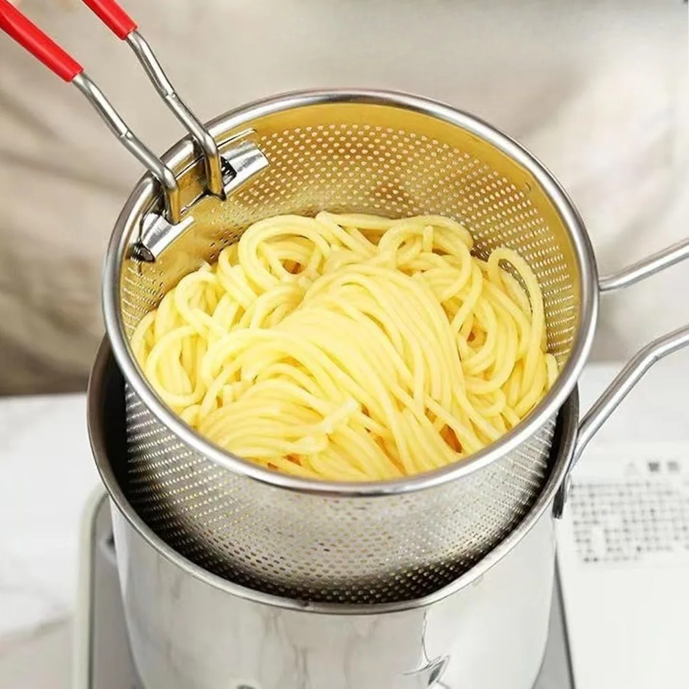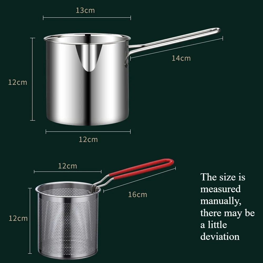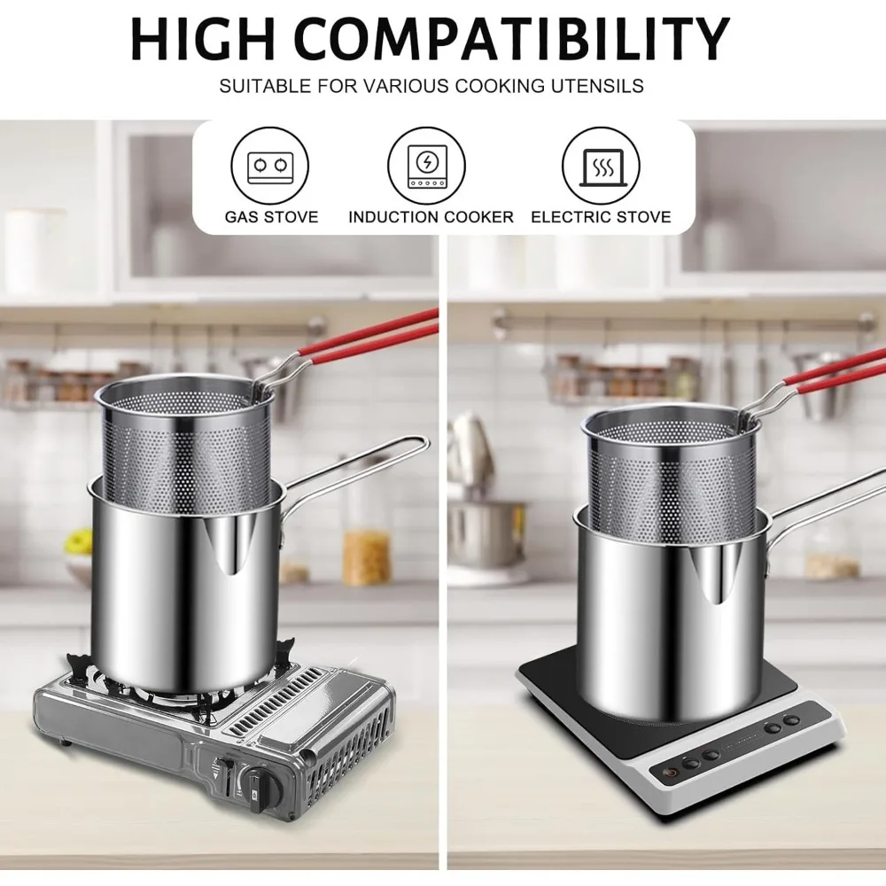 304 Stainless Steel Deep Frying Pan Kitchen Gadgets with Frying Basket and Handle