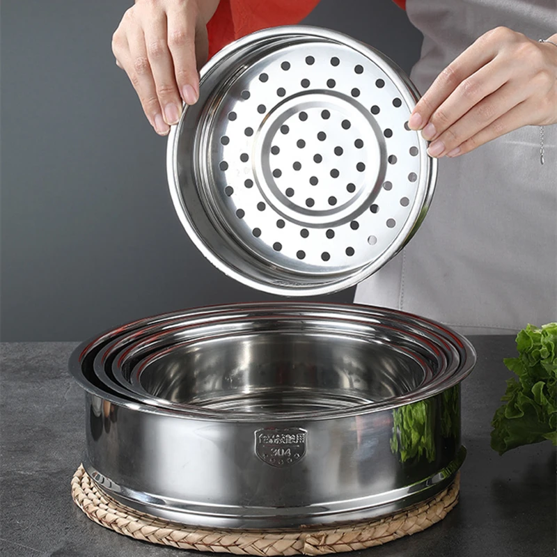 304 Stainless Steel Food Steamer for Dumplings with Double Ear Steaming Grid Rice Cooker Pot Drain Basket Kitchen Cooking Tools
