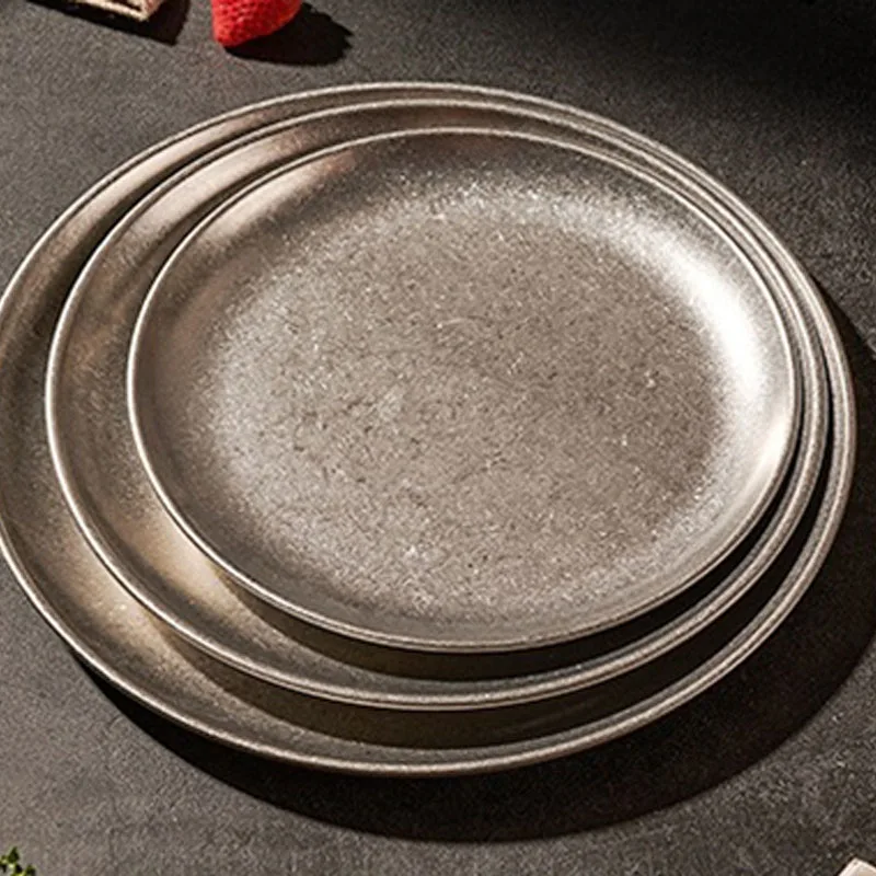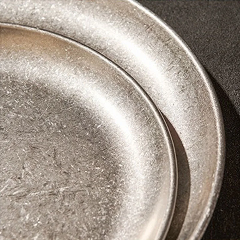 304 Stainless Steel Plates Vintage Coffee Trays Retro Tableware Dinner Plates
