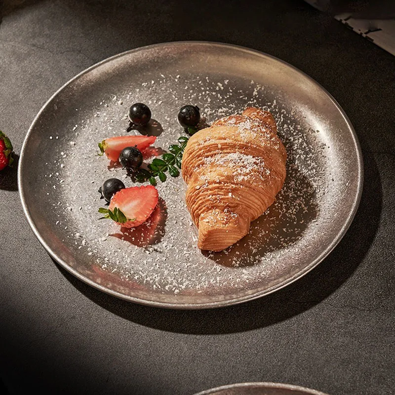 Introducing our Vintage Coffee Trays, crafted from high-quality 304 stainless steel, perfect for serving steak, pasta, and desserts. These retro-style dinner plates add a touch of light luxury to your kitchen and dining experience.
