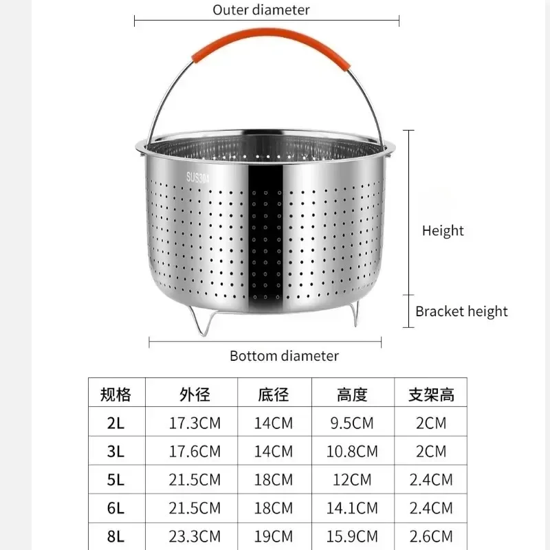 304 Stainless Steel Rice Steamer, Rice Cooker Inner Steaming Compartment, Water Separating and Draining Steaming Rack, 2-8L