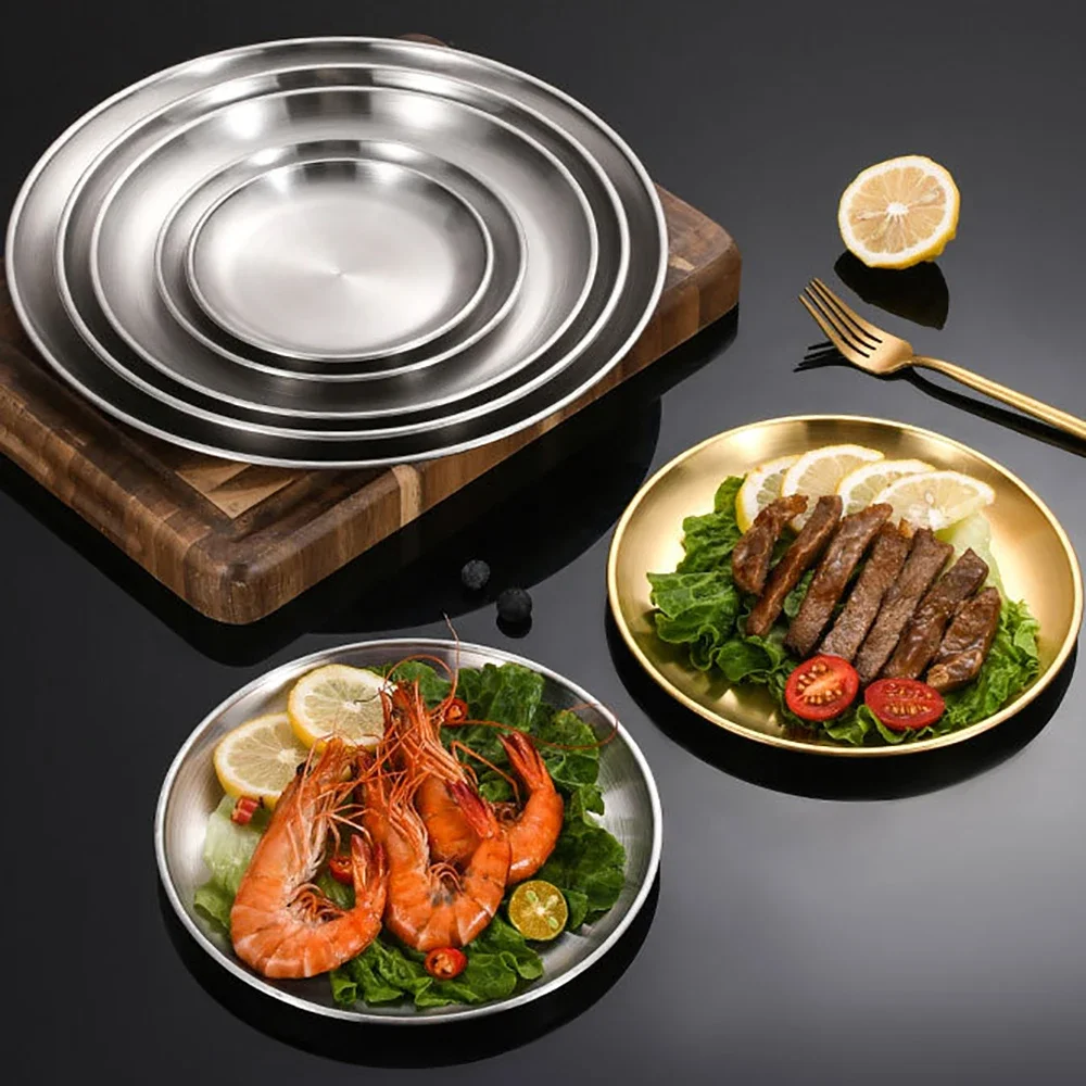 3Pcs Stainless Steel Round Shallow Tray Plate Rust-Proof Camping BBQ Dishes