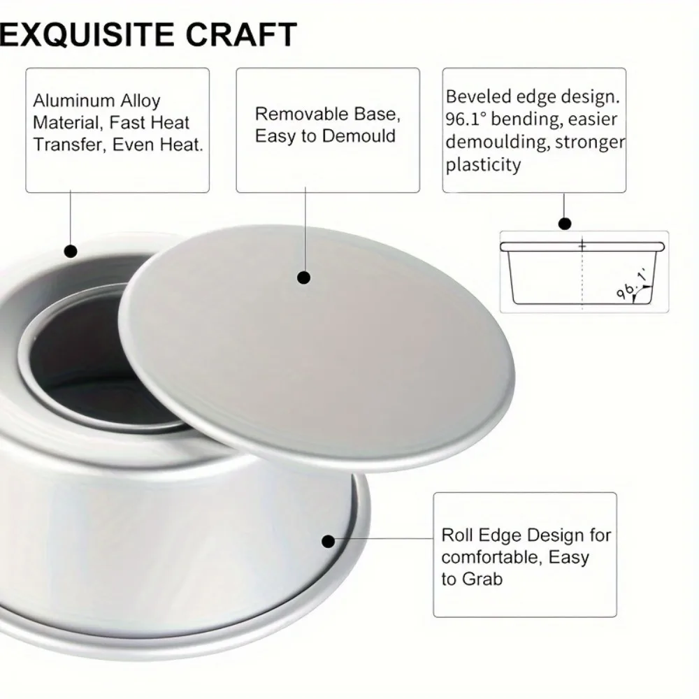 Introducing our versatile Aluminum Round Cake Bakeware, designed for baking delicious chiffon cakes and egg tarts. This bakeware features a removable bottom for easy cake release and is available in multiple sizes to suit your baking needs.