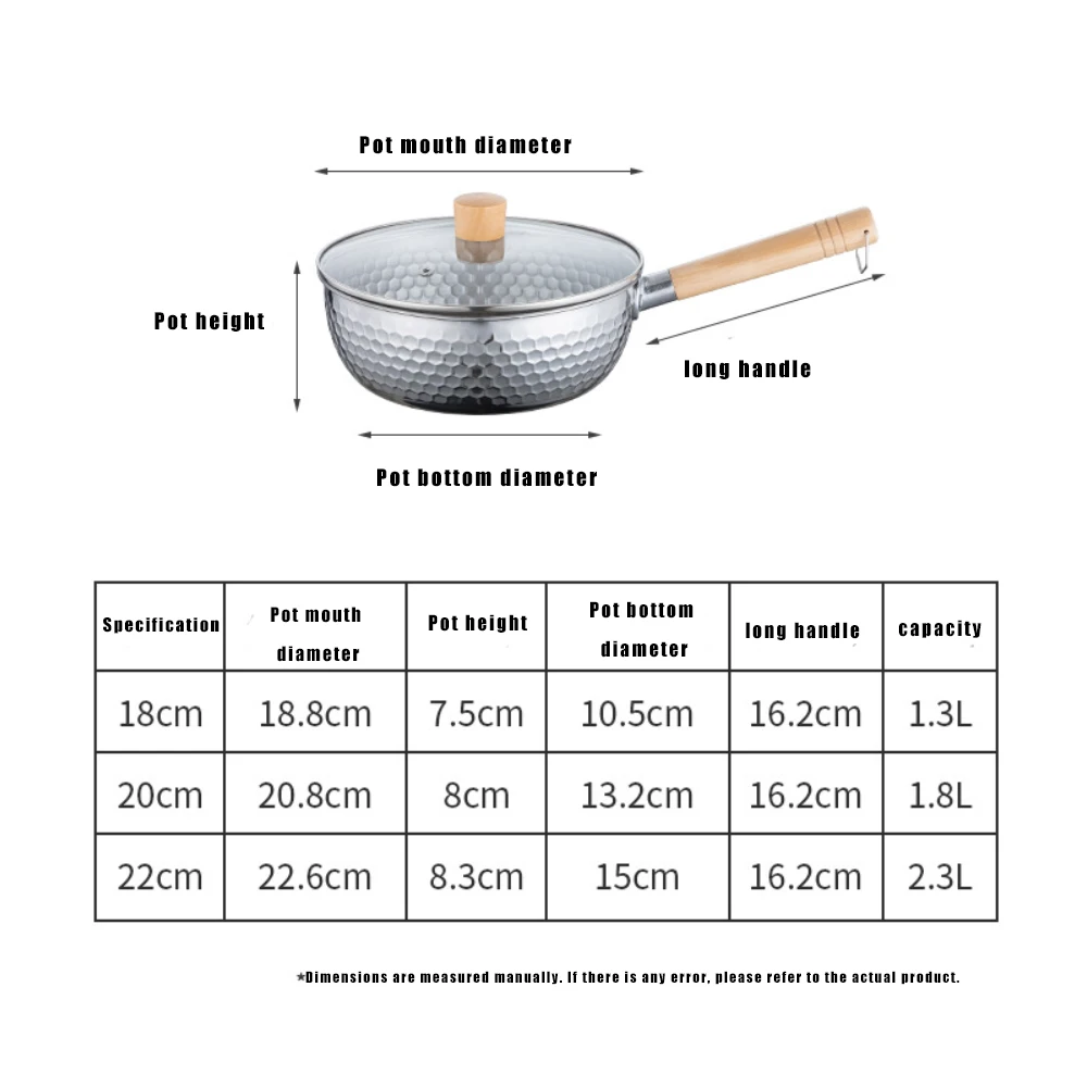 This 430 stainless steel soup pot features a Japanese-style design with a wooden handle, making it a versatile addition to your kitchen cookware. Ideal for stewing, making milk, or preparing various dishes, this pot combines functionality with a sleek aesthetic.