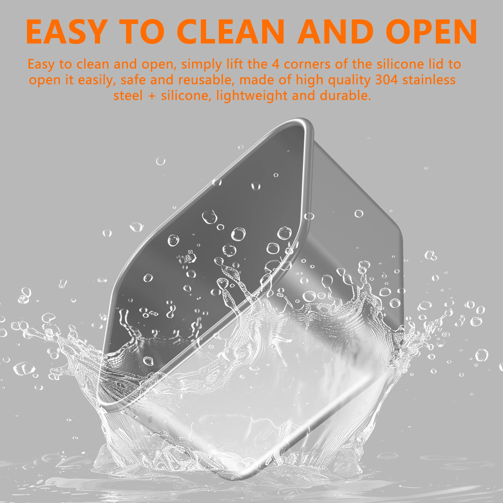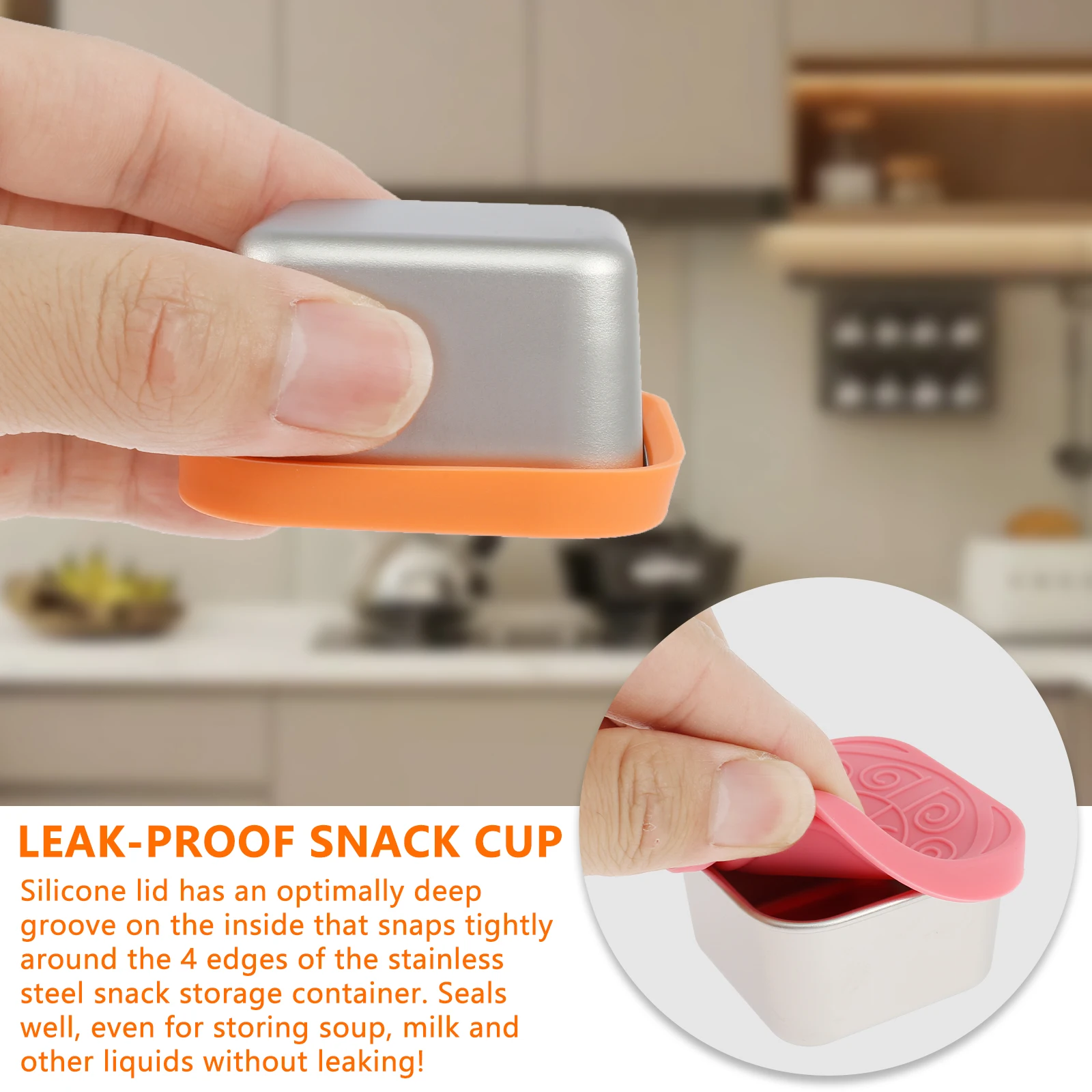 4Pcs Stainless Steel Snack Container Salad Box with Silicone Lids Leakproof