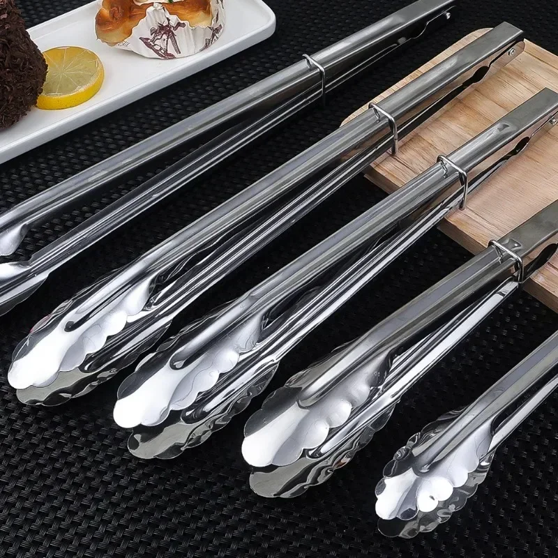 Stainless Steel Non Slip Food Tongs Meat Salad Bread Clip Cooking Tools 7 9 12 Inch