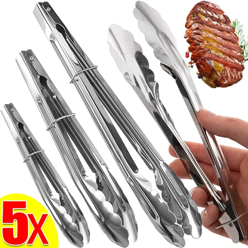 - 5 x Stainless Steel Non-Slip Food Tongs