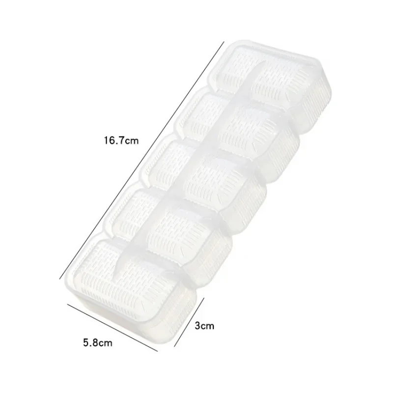 Introducing the 5 Holes Sushi Mold, a versatile plastic sushi maker designed for DIY sushi enthusiasts. This non-stick press allows you to create perfectly shaped rice balls with ease, making it an essential tool for sushi preparation.