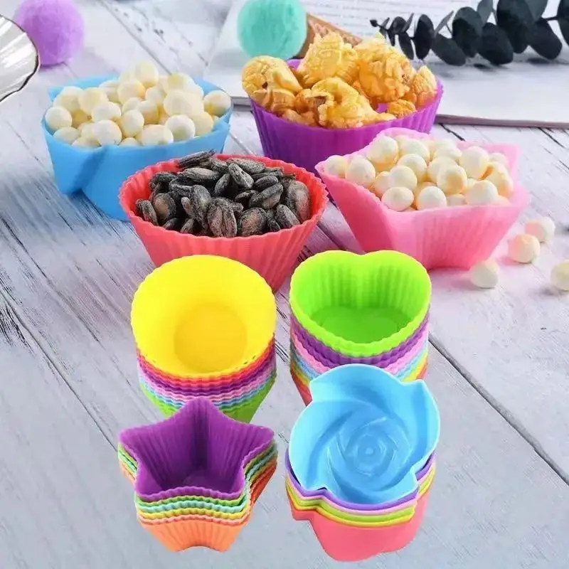 Silicone Muffin Mold Set 6PCS 12PCS Round Heart Flower Star Square Baking
