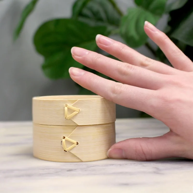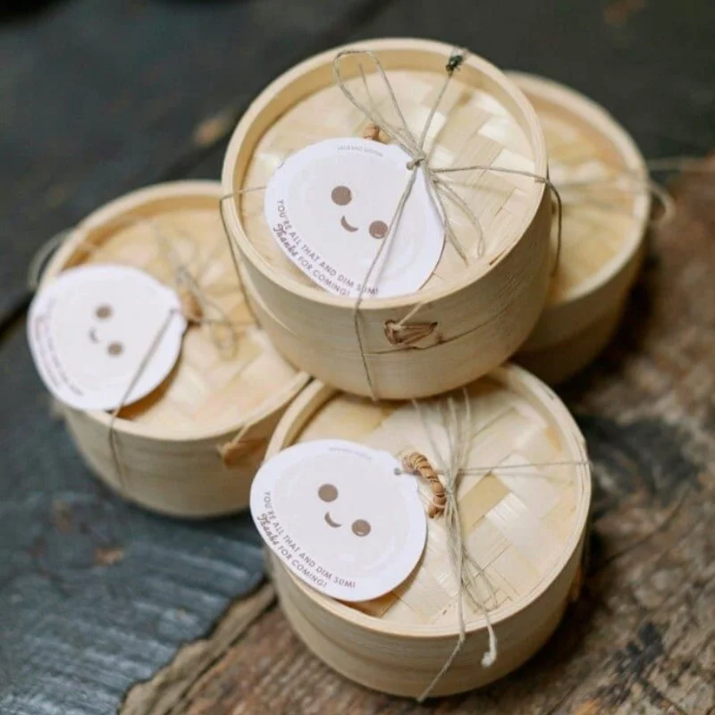 These Mini Bamboo Steamer Baskets are perfect for cooking and serving bite-sized appetizers, dim sum, dumplings, and desserts. Ideal for catering events, weddings, and parties, they add a charming touch to any table setting.