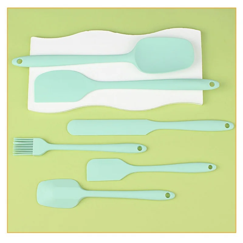 This Silicone Spatula Set includes 6 pieces designed for cooking, baking, and mixing. Made from food-grade silicone, these spatulas are non-stick and heat resistant, making them ideal for various kitchen tasks.