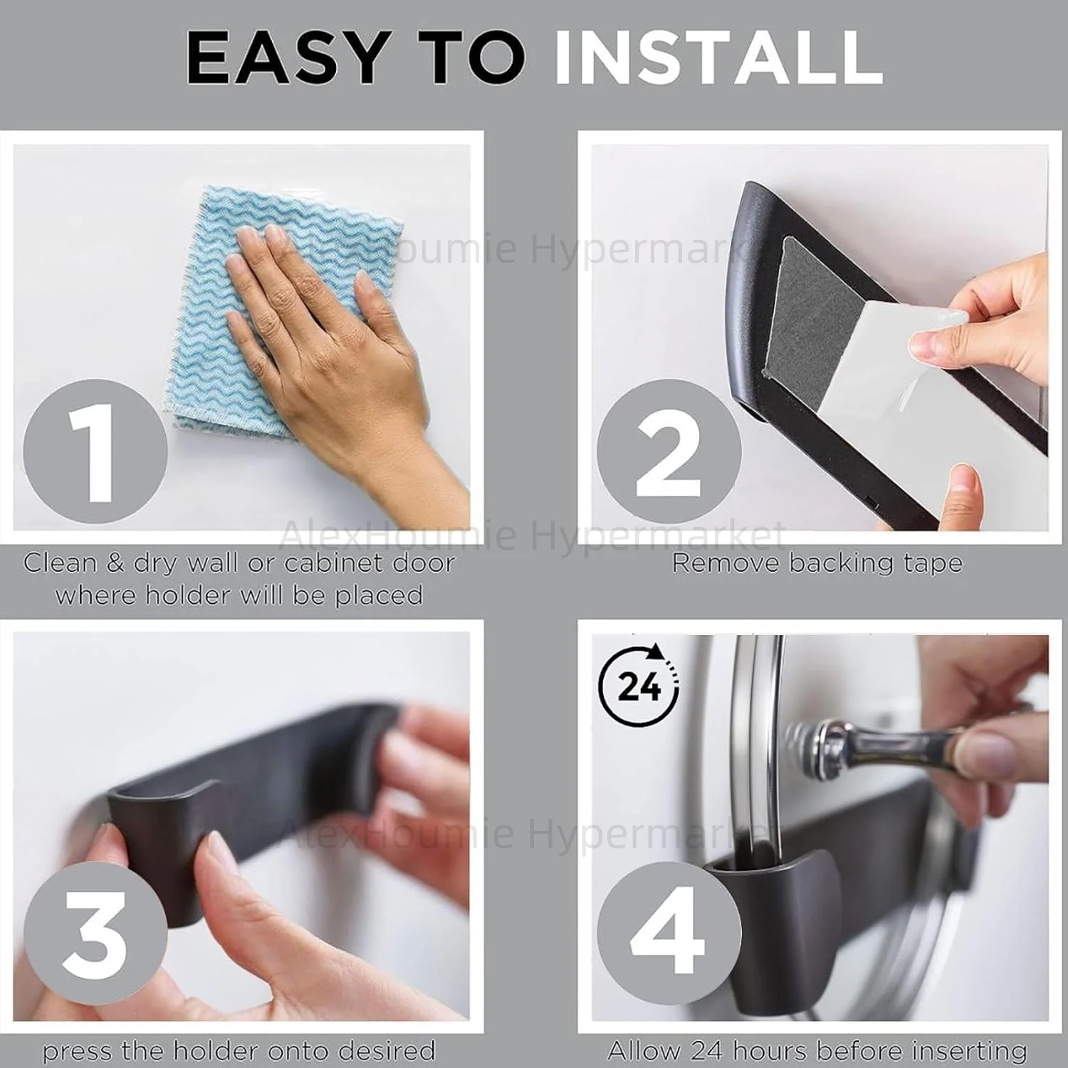 Organize your kitchen with this 6PCS Pot Rack Wall-Mounted Holder. This self-adhesive storage solution is designed to keep your pots and pans neatly arranged without the need for drilling.