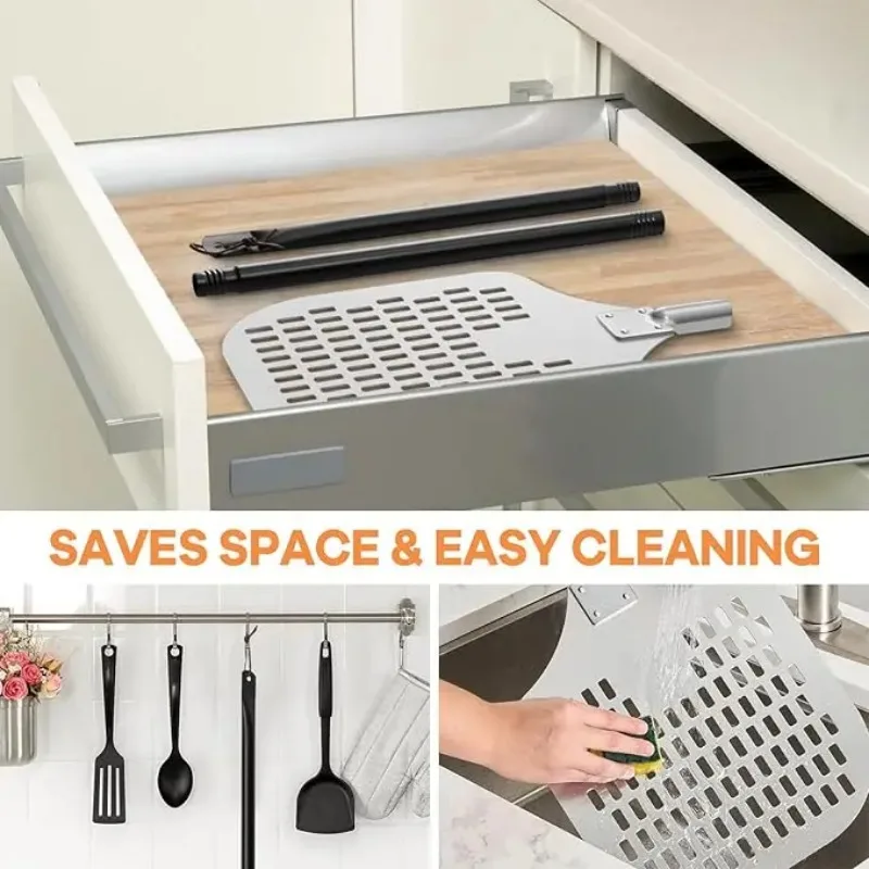 Introducing the Professional Pizza Spatula Paddle, designed for effortless pizza handling. This versatile pizza peel is perfect for both home and professional use, allowing you to easily transfer pizzas in and out of the oven.