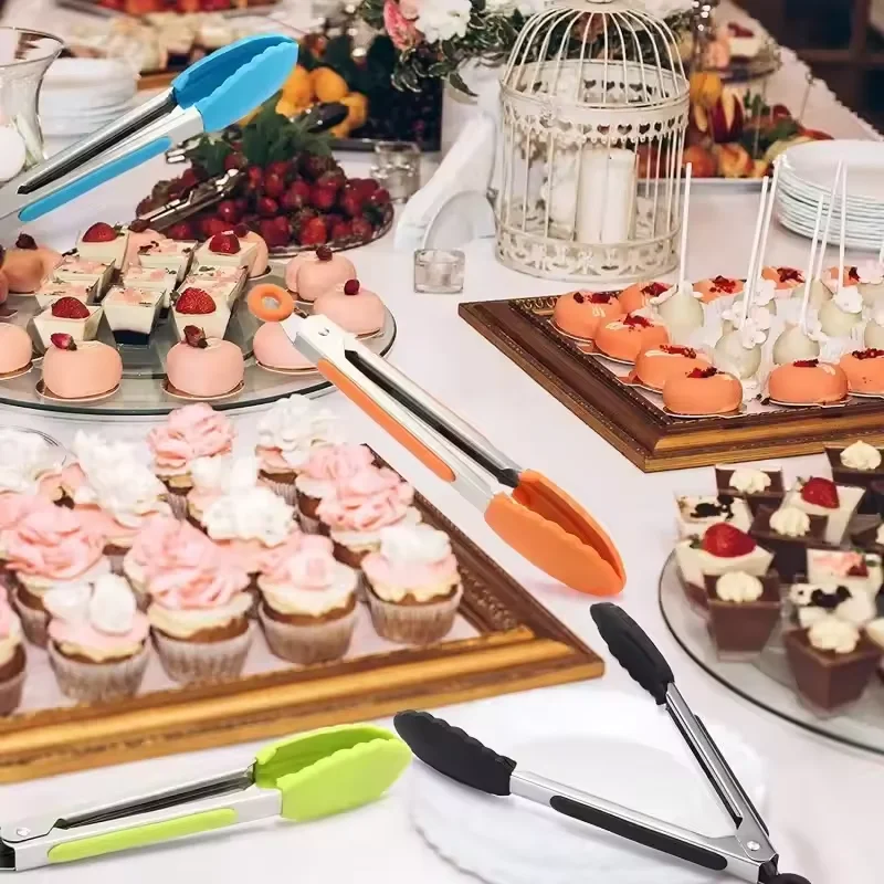 Mini Snack Food Tongs Silicone Stainless Steel Non-slip Kitchen Utensils