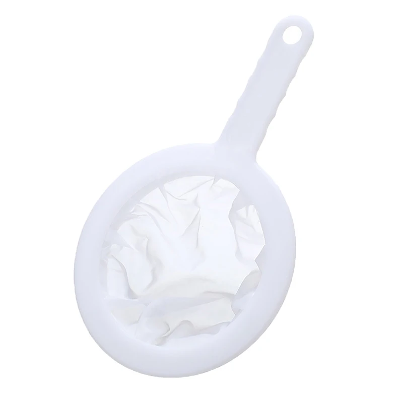 This ultra-fine mesh strainer is designed for filtering various liquids such as soy milk, coffee, milk, and yogurt. Its nylon mesh ensures that even the smallest particles are effectively filtered, providing a smooth and clean result.