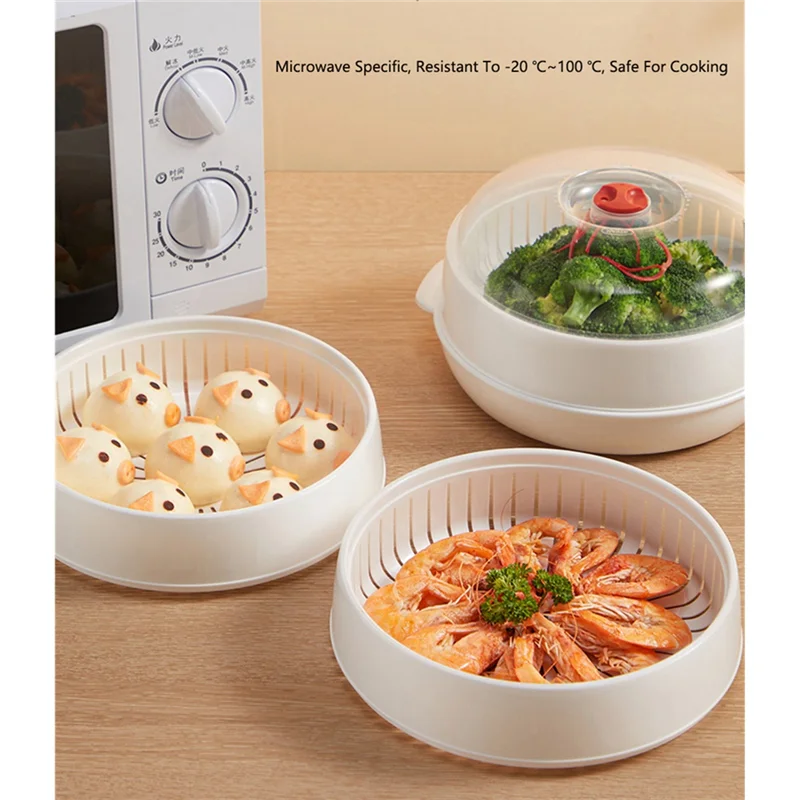 Microwave Steamer Multifunctional Cooking Pot for Dumplings Vegetables Bacon Seafood