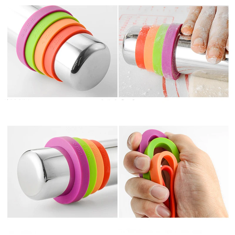 Adjustable Stainless Steel Rolling Pin with 4 Thickness Removable Rings for Baking