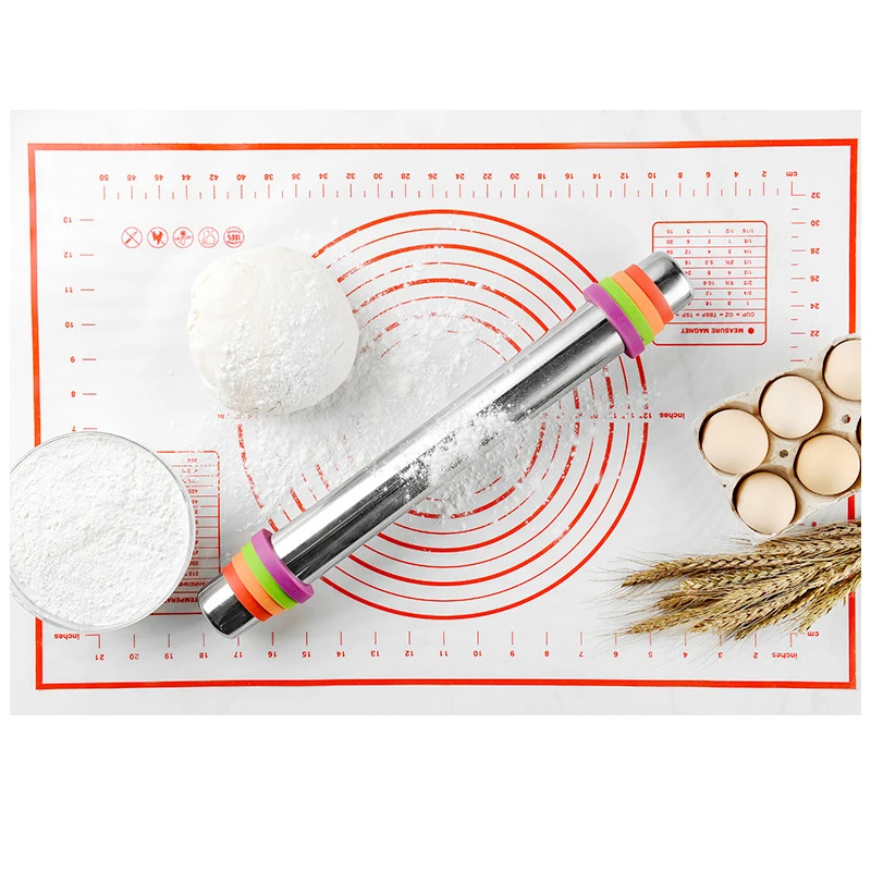Introducing the Adjustable Stainless Steel Rolling Pin with Silicone Baking Mat and 4 Thickness Rings, a versatile kitchen tool designed for all your baking needs. This rolling pin allows you to achieve the perfect dough thickness with ease, making it ideal for cookies, pastries, and more.