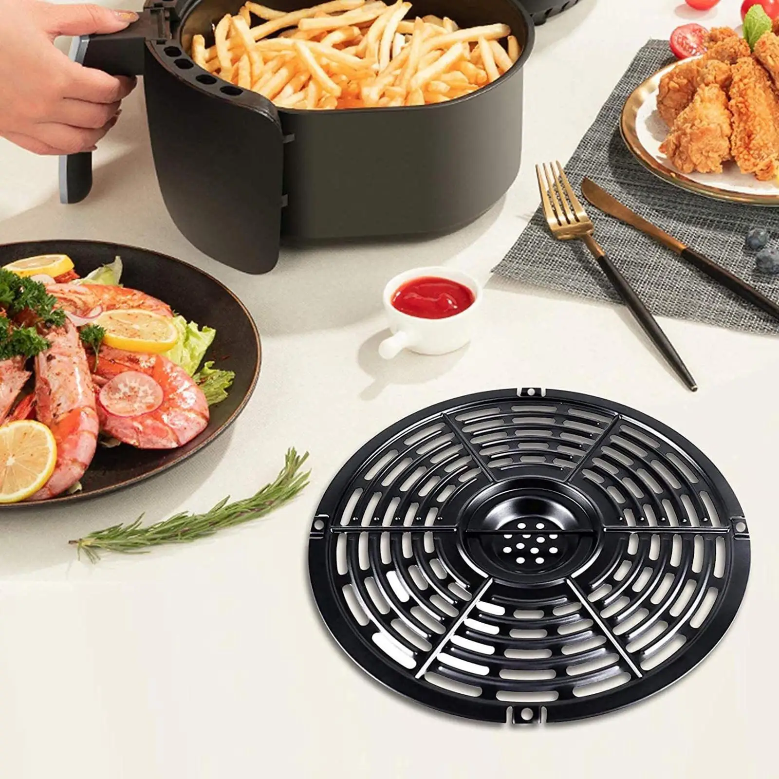 - Prevents food from contacting the air fryer directly, reducing stains.