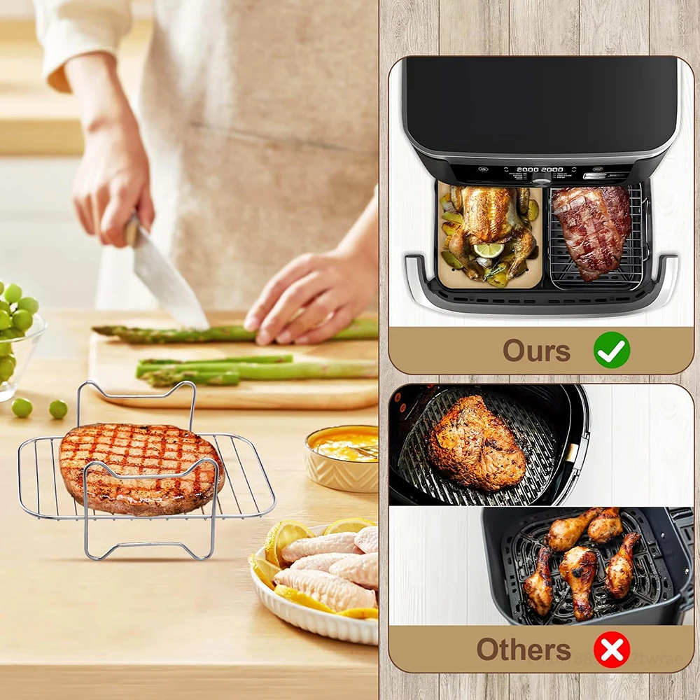 Air Fryer Rack Set with 100pcs Parchment Paper Compatible for Ninja DZ201 DZ401