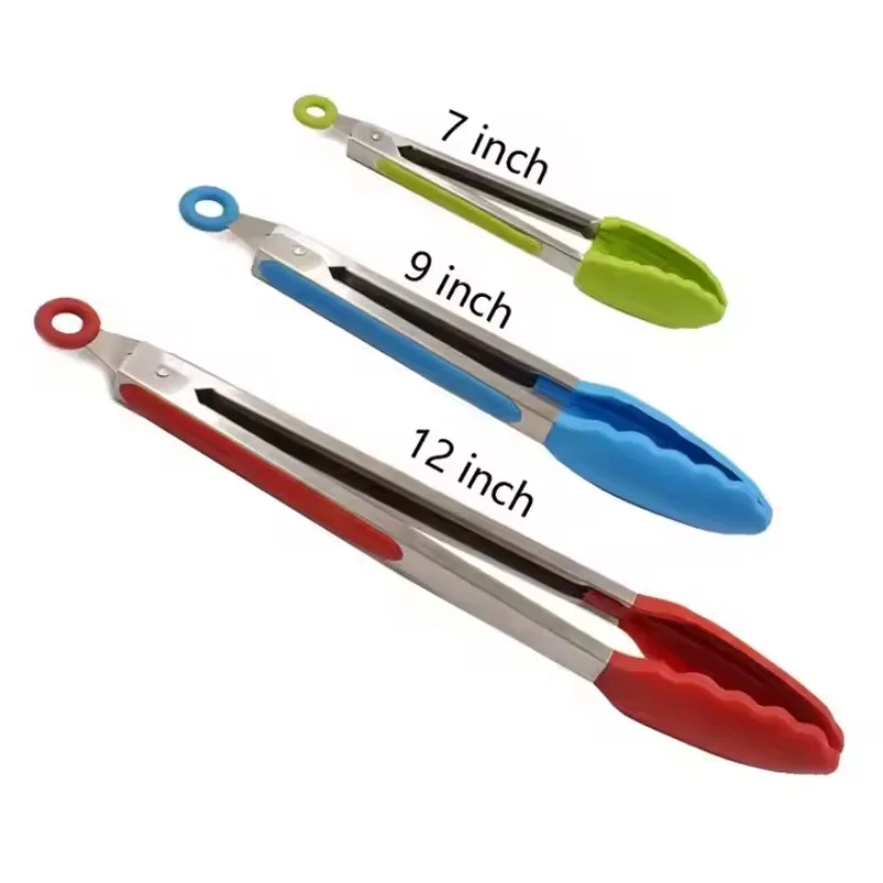 Anti-slip Kitchen Tongs Stainless Steel Silicone Tip BBQ Salad Serving Tool