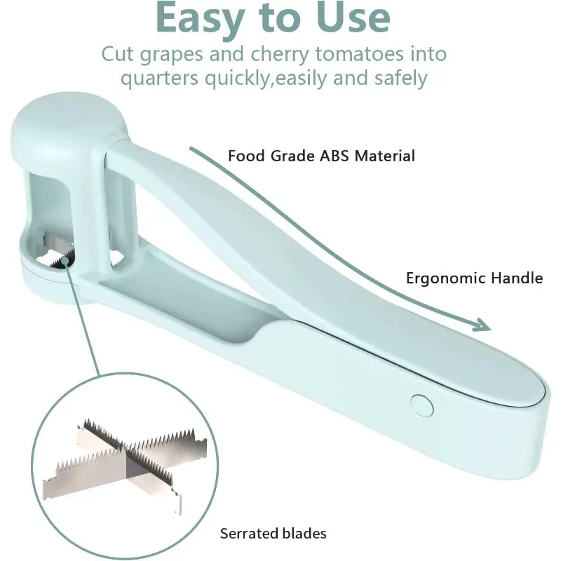 The Grape Slicer Kitchen Tool is an essential fruit cutter designed for slicing grapes, cherry tomatoes, strawberries, and more, making it a perfect accessory for salads and other dishes.