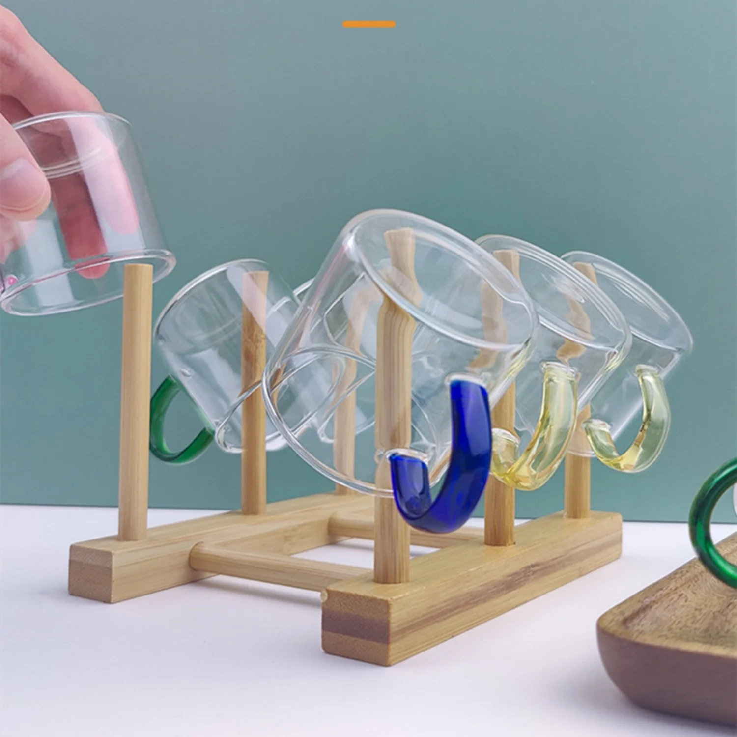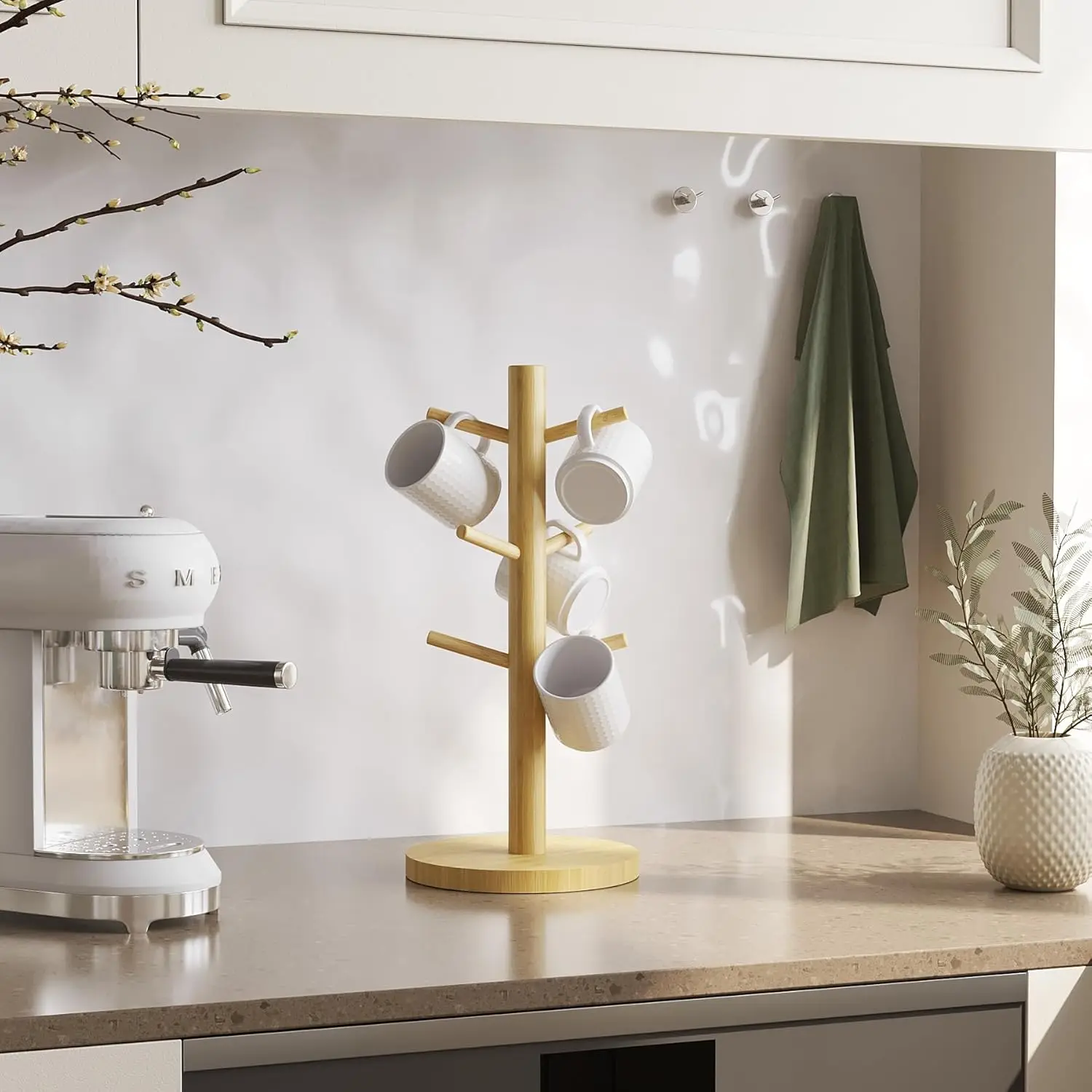 Bamboo Mug Holder 6 Hooks Coffee Cup Holders Tree Sturdy Rack Stand