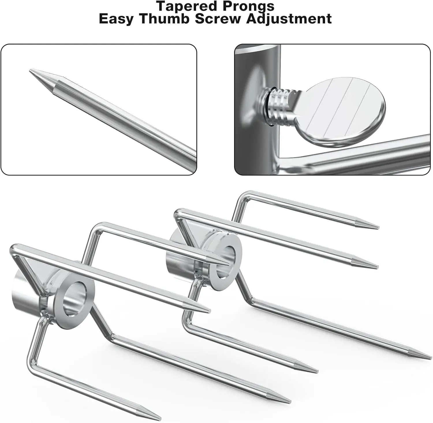 BBQ Rotisserie Fork Kit Stainless Steel Chicken Fork Double-Sided Skewer