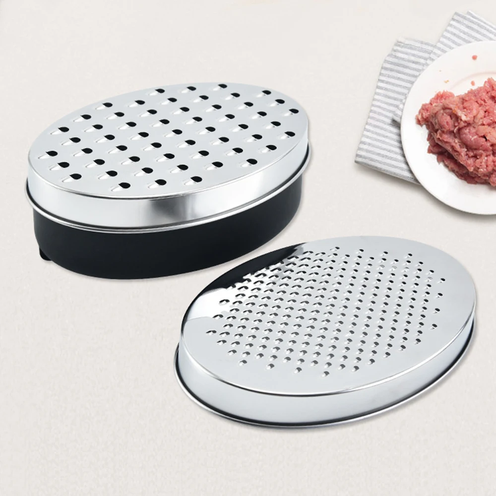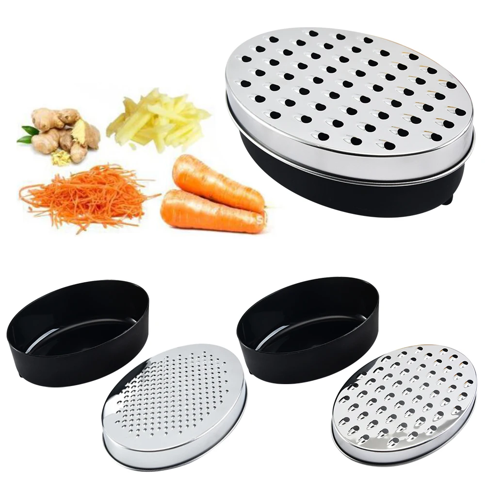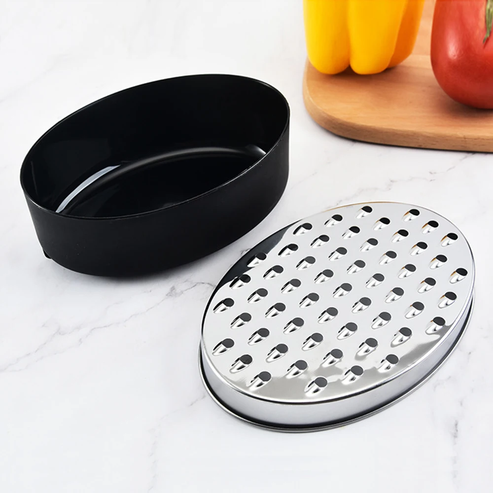 This stainless steel cheese grater is perfect for grating vegetables and fruits. It features a convenient container for easy collection of grated ingredients.