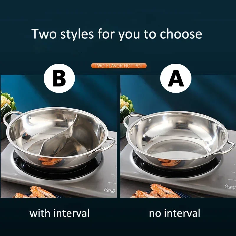 This Chinese Hot Pot is designed for versatile cooking, featuring a thickened stainless steel construction and a 2-in-1 divided design that allows for two different flavors. It is suitable for use on gas stoves and induction cookers, making it a perfect addition to any kitchen.