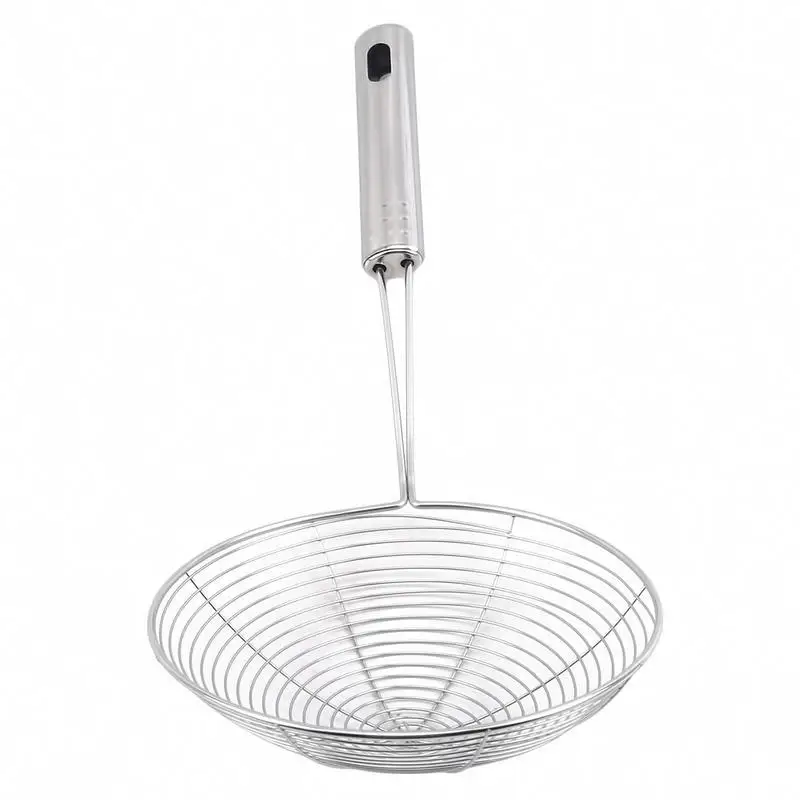 The Colander Oil Fried Filter is designed for efficient straining and draining of hot foods such as noodles and fried items. With a large long handle, it provides a comfortable grip while keeping your hands safe from heat.