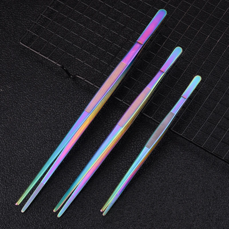 Stainless Steel 12 Inch Kitchen Tongs Colorful Culinary Precision Tweezers