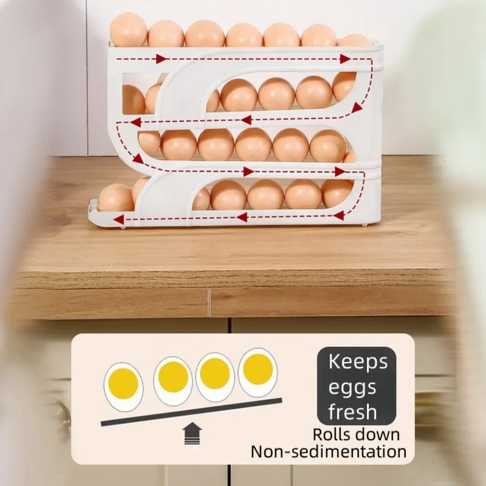 Organize your refrigerator with this automatic rolling egg dispenser, designed to save space while keeping your eggs easily accessible. This egg roller can hold either 20 or 30 eggs, making it a practical addition to any kitchen.