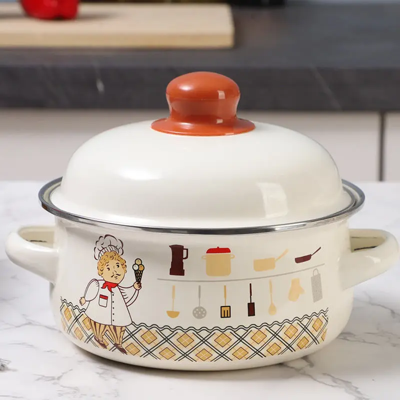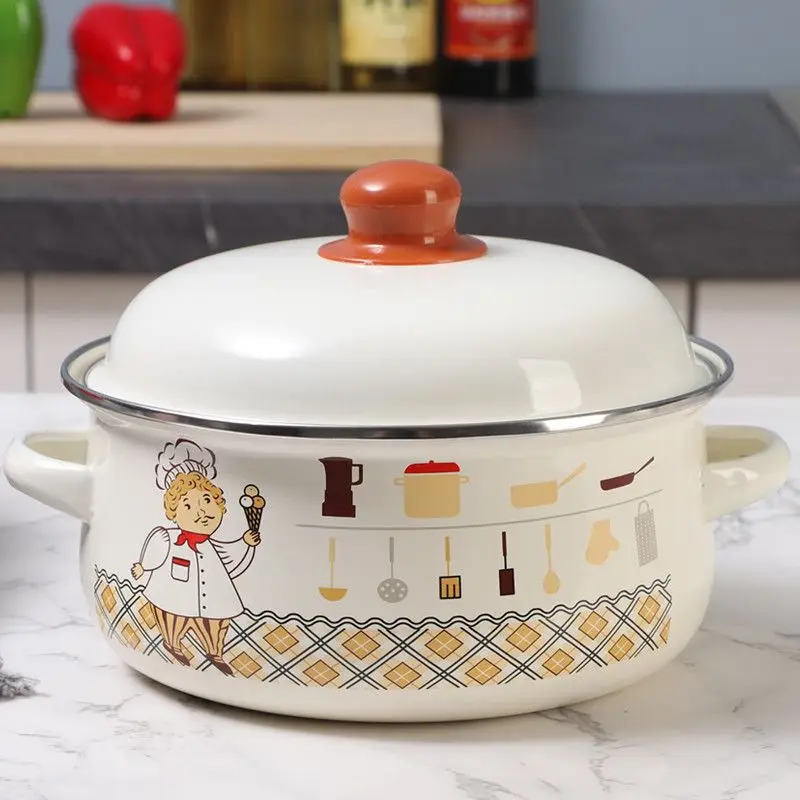 Enamel Cast Iron Pot is a versatile kitchen essential designed for cooking soups, stews, and baby food. This pot features a porcelain-coated surface that ensures even heat distribution and easy cleaning, making it a perfect addition to any kitchen.