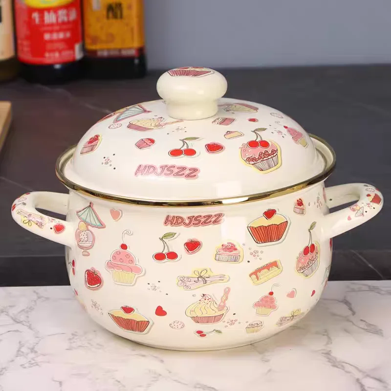 Enamel Soup Pot Cooking Noodles Hot Pot Kitchen Cookware Induction Cooker