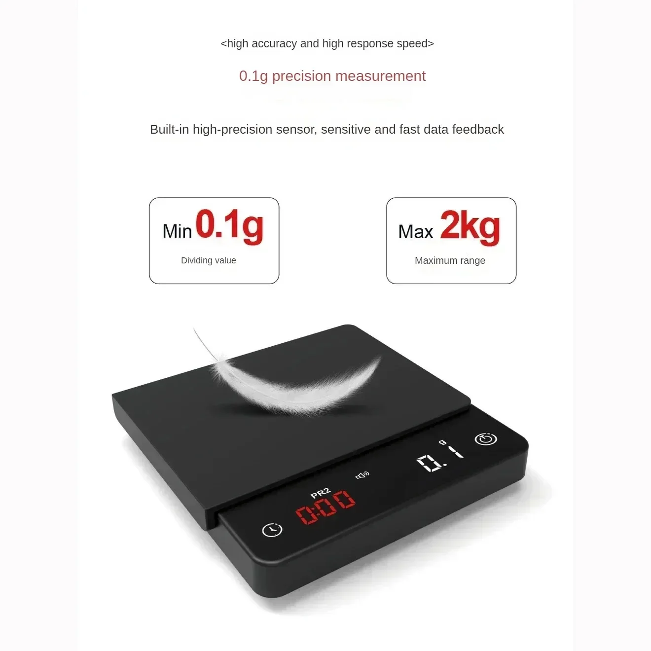 Espresso Coffee Kitchen Scale Mini Smart Timer Digital Weight Scale 2kg 0.1g