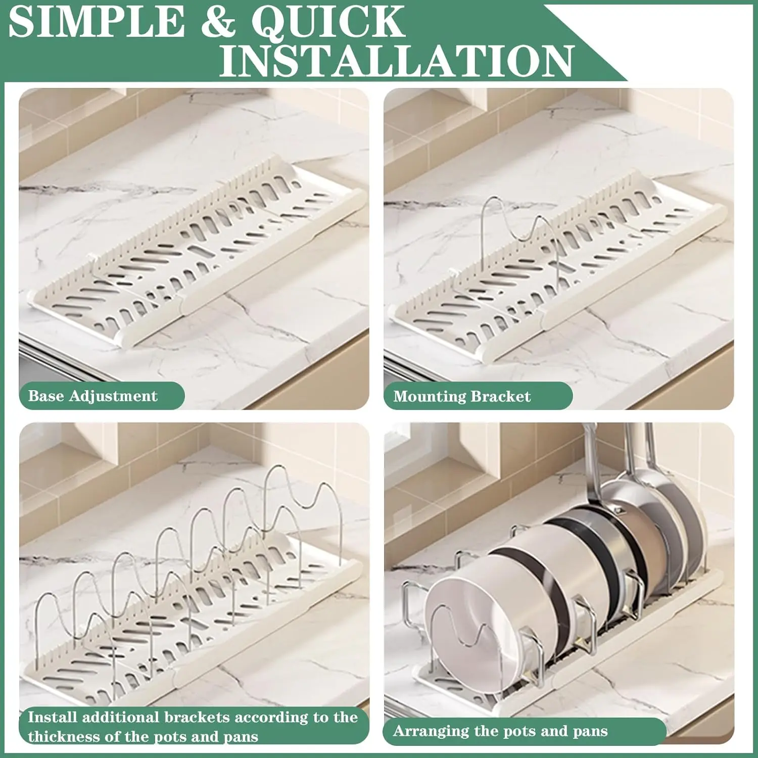 The Expandable Pans Organizer Rack is designed to maximize your kitchen cabinet space by providing a versatile storage solution for pans, utensils, and dishes. This rack helps keep your kitchen organized and clutter-free.