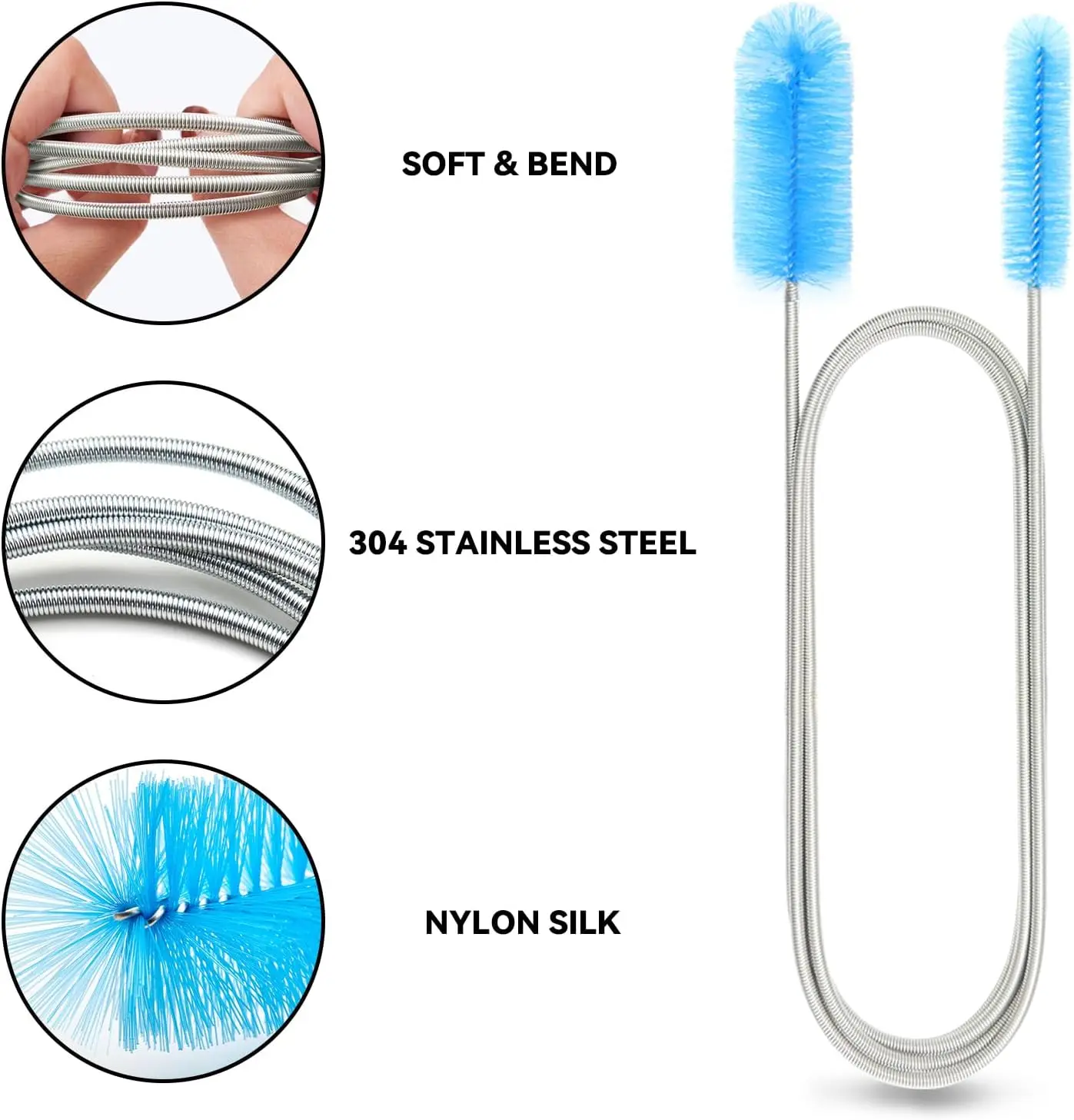 Flexible Drain Brush Cleaning Brush Long Handle Nylon Bristles for Fish Tank Kitchen