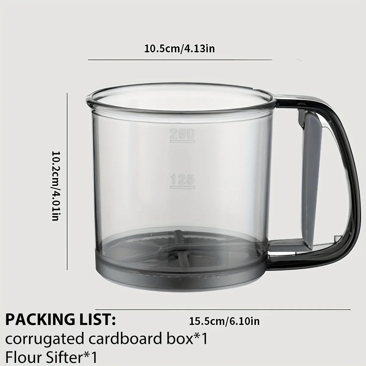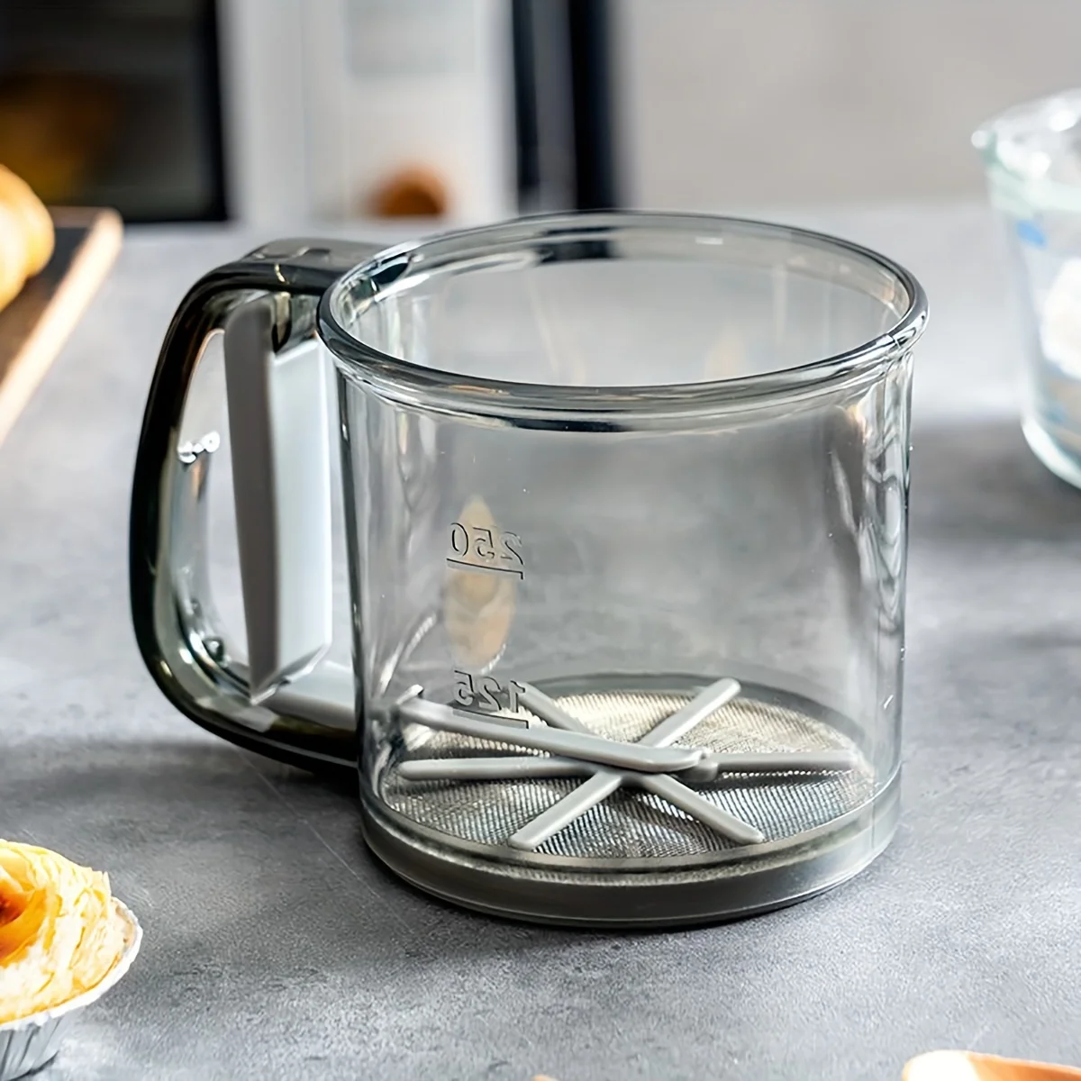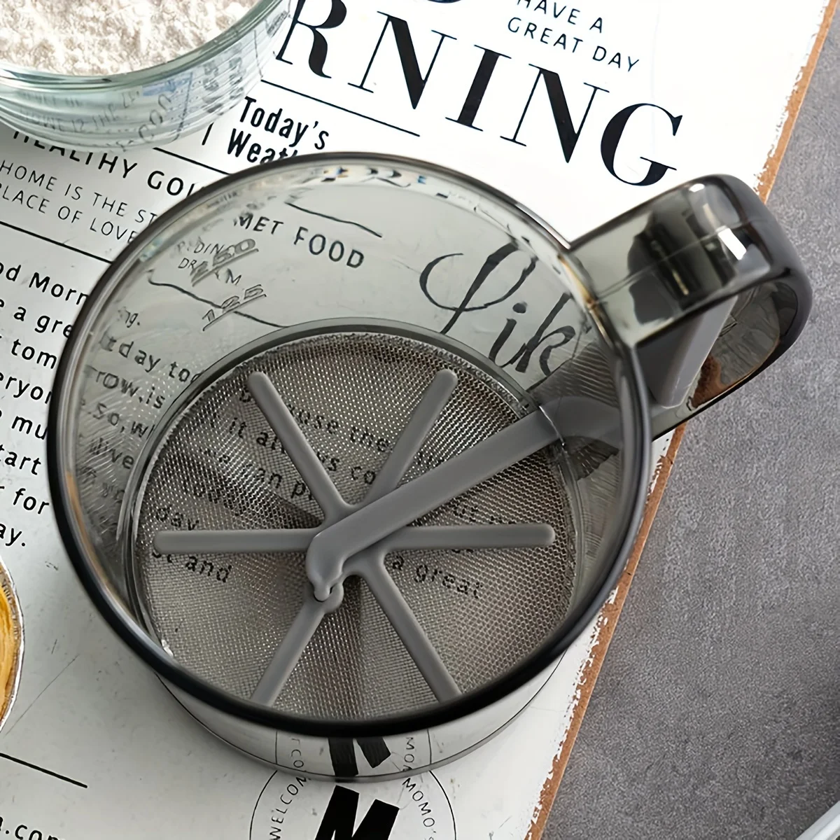 The Handheld Semi-Automatic Double-Decker Flour Sifter is designed for efficient baking. This ultra-fine mesh cup allows for easy sifting of flour and other dry ingredients, ensuring a smooth and consistent texture in your baked goods.