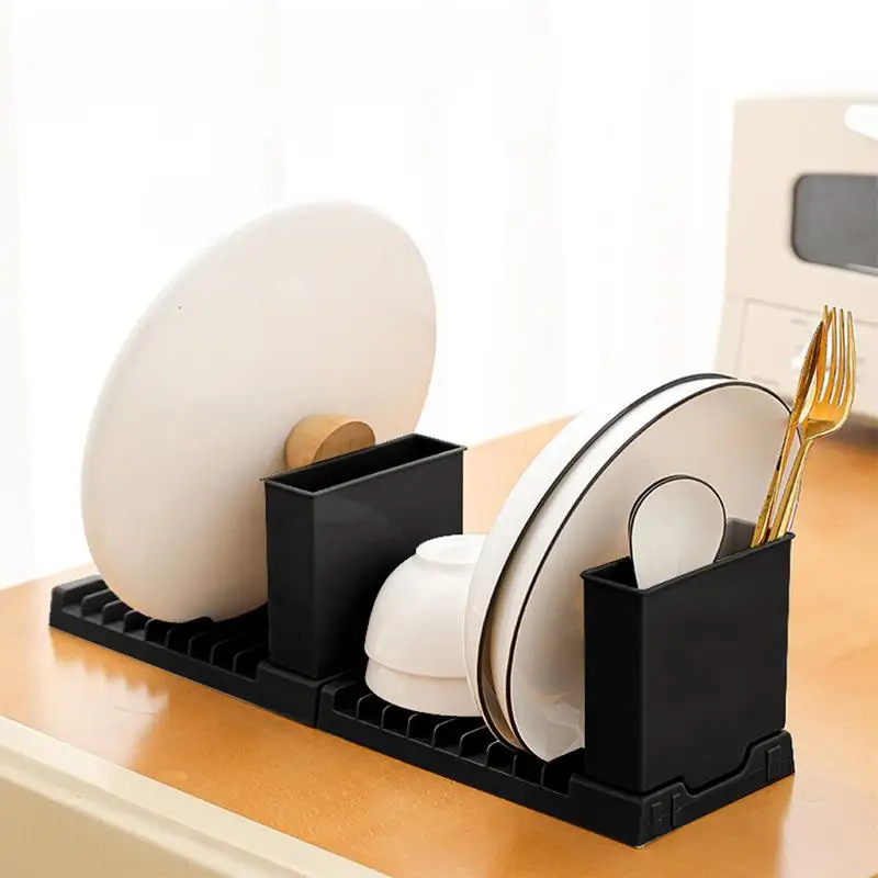 This Folding Dish Drying Rack is a versatile kitchen organizer designed to efficiently drain and store your utensils and dishes. It is available in three colors: black, white, and gray, making it a stylish addition to any kitchen.