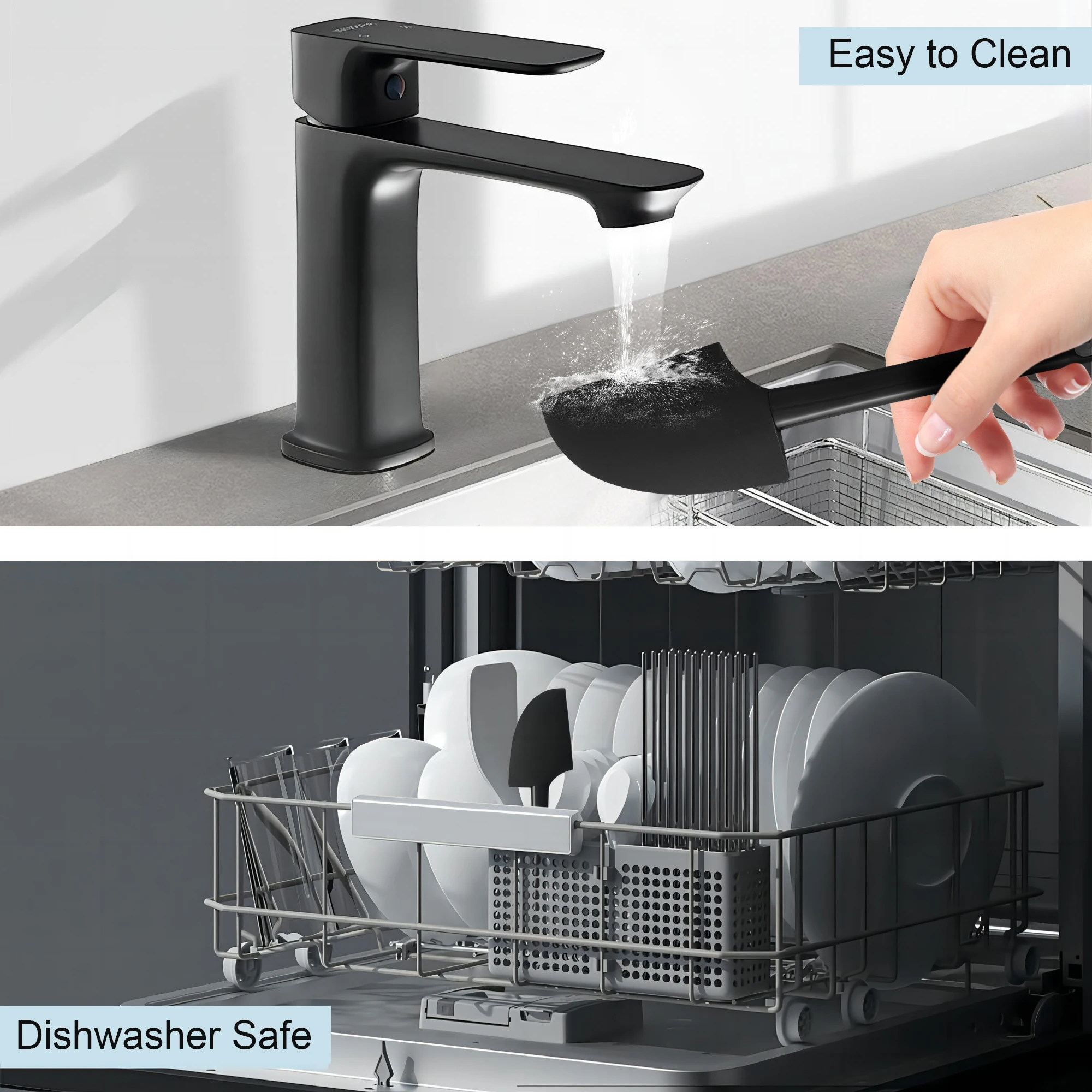 • Easy to Clean: The solid silicone design is bacteria-resistant and does not melt or warp, making it perfect for non-stick pans.