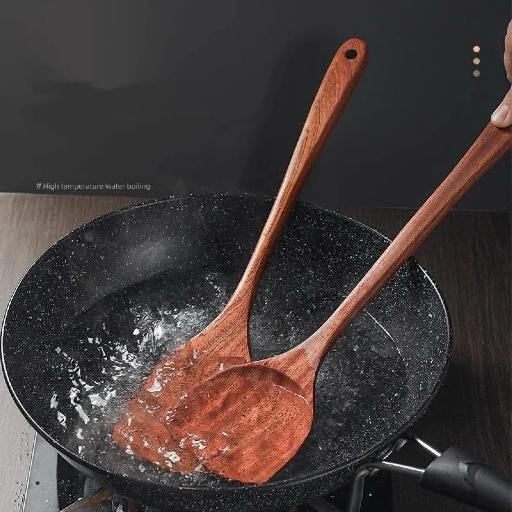 This food-grade wooden spatula is designed specifically for non-stick pans and is high-temperature resistant, making it an essential tool for cooking in any household.