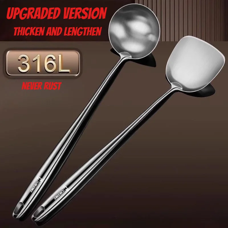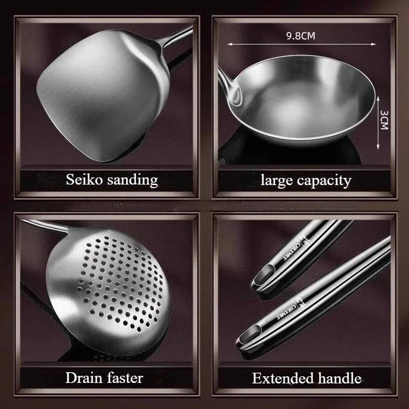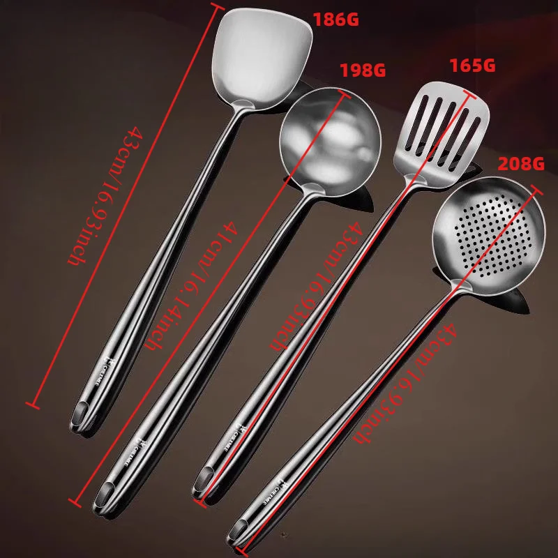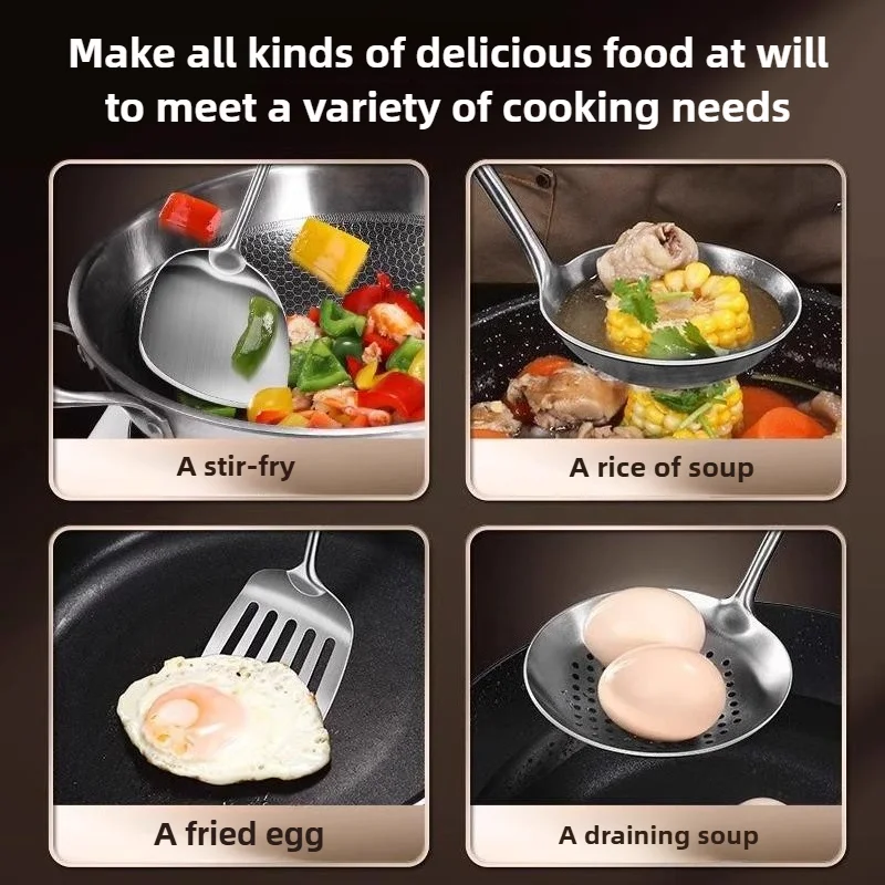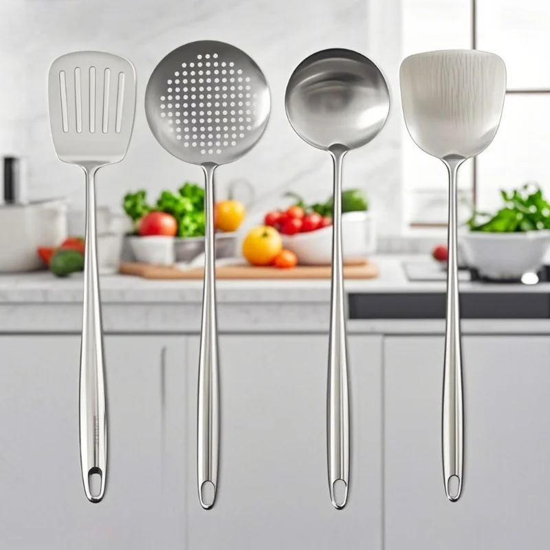 Food Stainless Steel Wok Spatula Metal Kitchen Utensils Slotted Turner Spoon Ladle Set